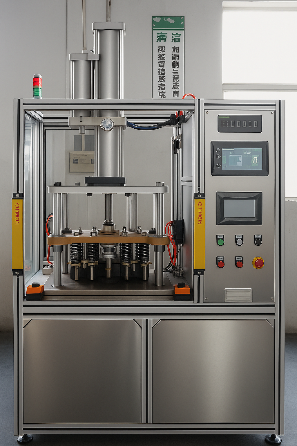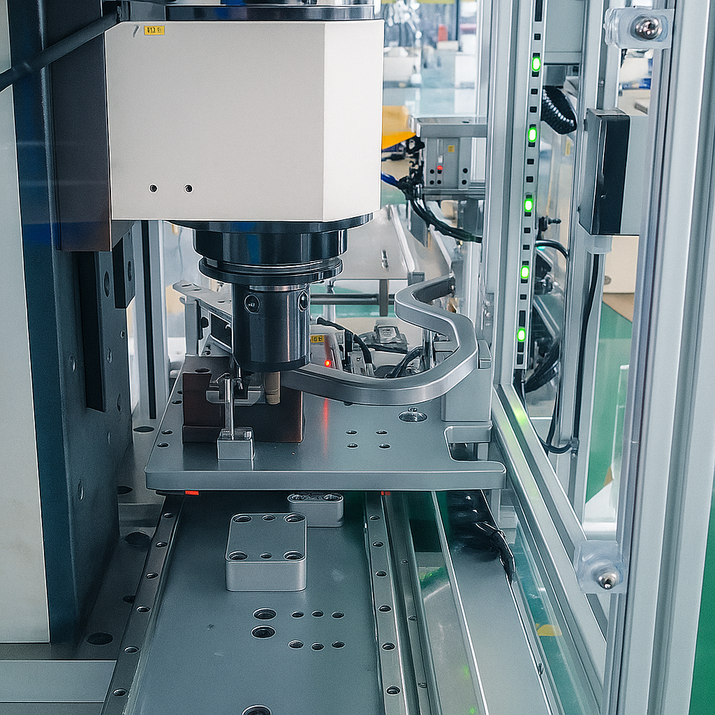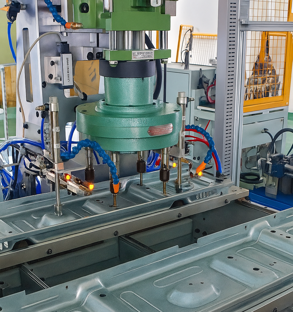 Vertical or horizontal riveting machine with part shuttling system and / or vision inspection system.